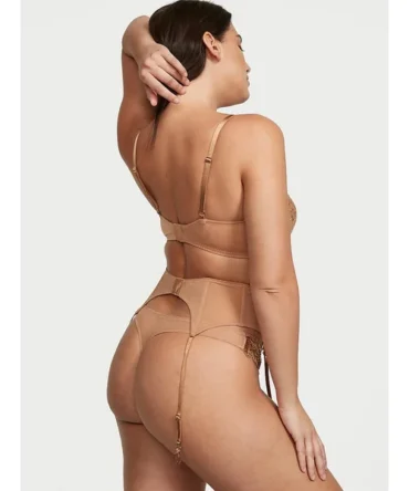 Gold Sequined Ziggy Glam Floral Embroidery Garter Belt