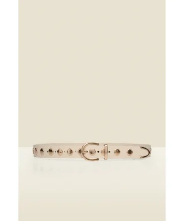 Cream Leather Western Studded Waist Belt