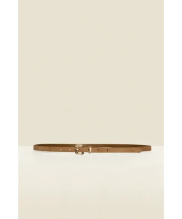 Tan Suede Gold Hammered Buckle Slim Leather Belt