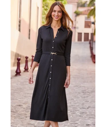 Black Premium Buckle Belted Shirt Dress