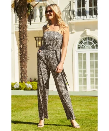 Sage Green & Ivory Geometric Spot Print Belted Jumpsuit