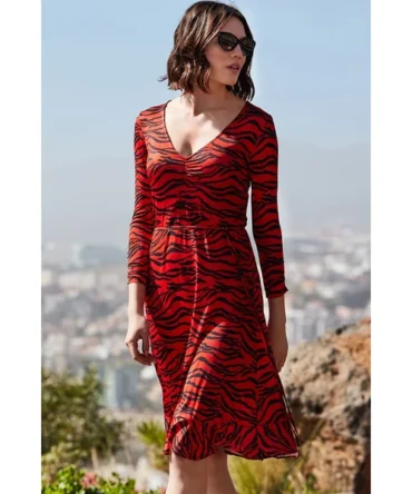 Tiger Print Slinky Midi Jersey Dress