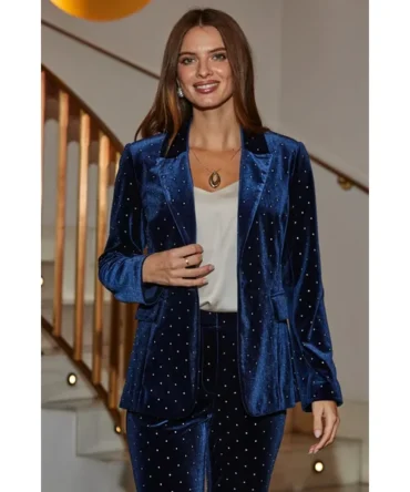 Sapphire Blue Velvet Sparkling Diamante Blazer