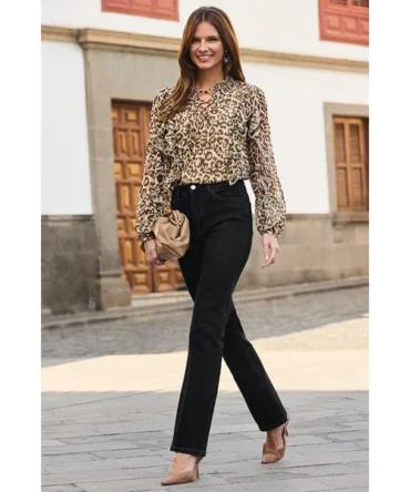 Petite Leopard Print Lace Up Blouse