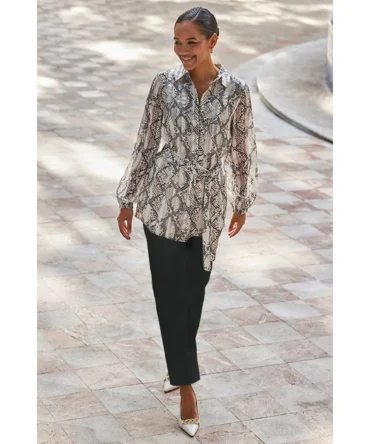 Petite Snake Print Relaxed Fit Belted Longline Shirt