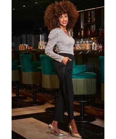 Silver Luxe Sequin Gathered Sleeve Top
