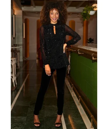 Black Sheer Sleeve Luxe Embellished Trim Top