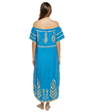 Metallic Embroidered Linen Midi Dress