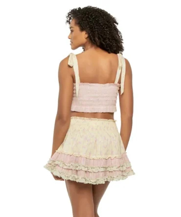 Black & Pink Floral Print Square Neck Ruched Detail Top