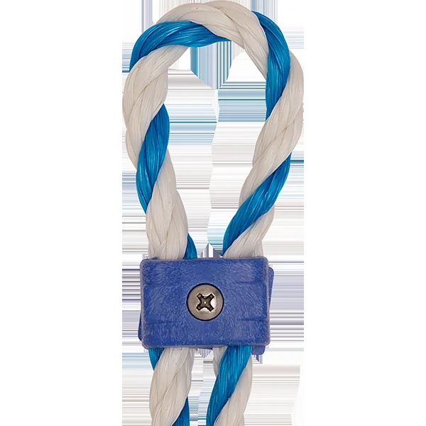 Heavy-duty nylon swimming pool rope clamp fits 1/2″ rope and includes locking screw.