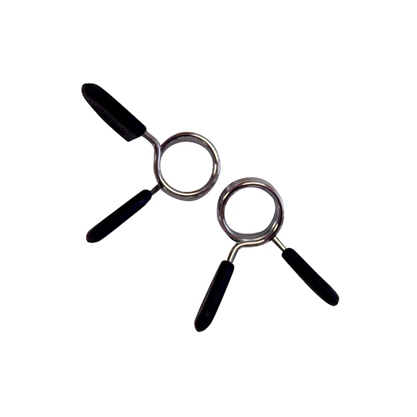 Spring Collars with Rubber Handles are a classic collar choice of many in the fitness world. With just a squeeze of the handles, these easy to use spring collars secure plates onto your standard barbell quickly and effectively. Rubber handles are featured to aid in an easy and comfortable grip for both loading and unloading of the bar. The steel collars are chrome plated to provide longevity and durability. These collars are perfect for home, school, or commercial gym settings. Spring Collars w/ Rubber Handles are sold in pairs.