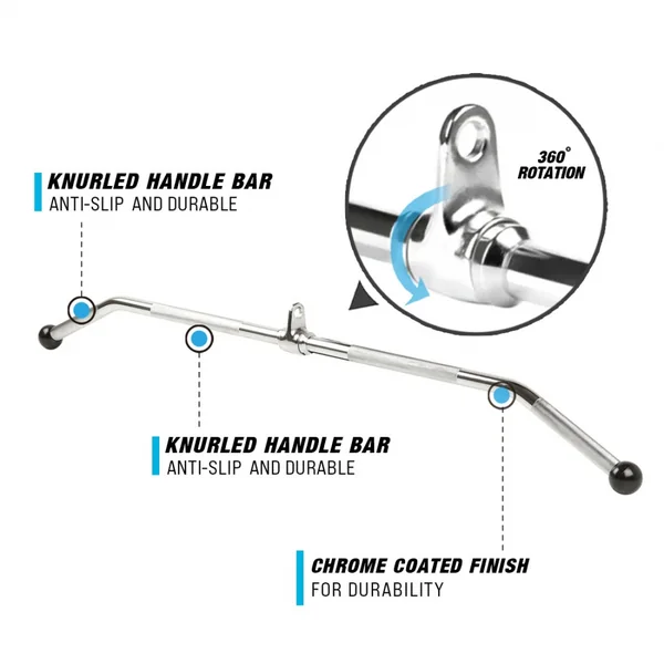 • Uses: Connect to selectorized back machines for wide lat pulldowns or behind the neck pulldowns