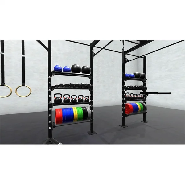 • 2x : Provides storage for wall balls, slam balls, bumper plates, kettlebells, and dumbbells. Each Storage Extension includes options to choose from: ball/plate shelves, kettlebell shelf, or dumbbell shelf.