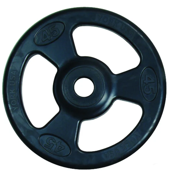 The ISO-Grip Plate is the industry’s answer to a 360-degree easy-pick-up plate cleverly achieved by casting the hub thicker than the rim. The patent-pending, radical benefit of a thicker hub and a streamlined rim is the anti-pinch nature of using the plates. The streamlined rim ensures a comfortable grip and enhanced maneuverability with its 3-grip design. The steel composite casting combined with the rubber coating makes the plates highly durable. Perfect for school weight rooms, in-home gyms, and commercial settings.