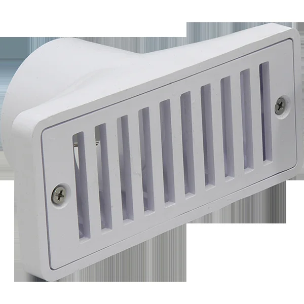 This cycolac plastic swimming pool gutter drain fitting comes with grate and has an open area of 4.81 sq. in. with a flow rate of 22.5 gpm at 1.5 feet per second. Dimensions: 2 1/2″ w x 6″ l; Weight: 1 lbs.