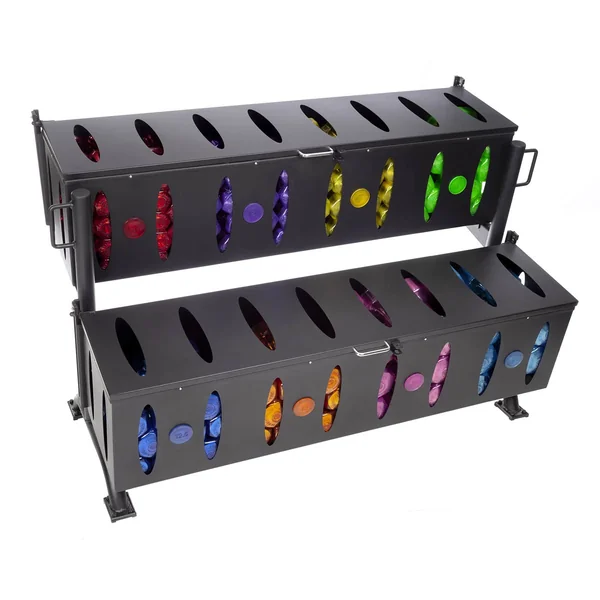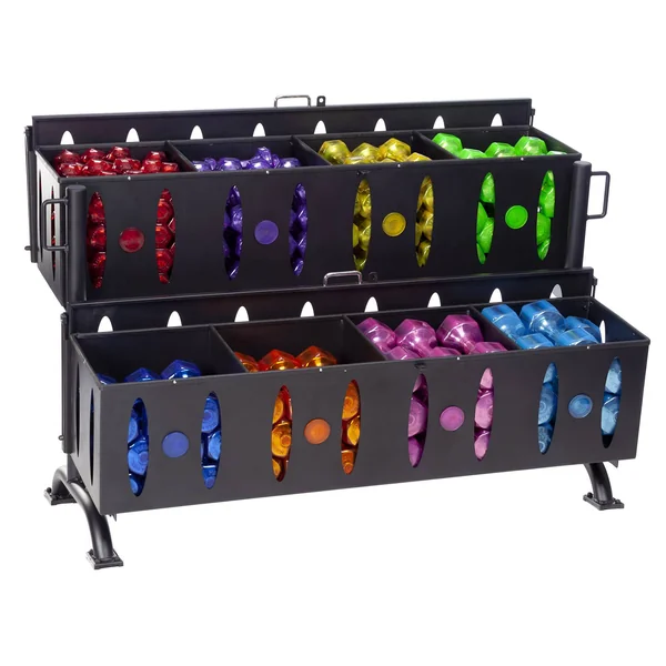 Here at Hampton Fitness, we carry an extensive array of group exercise storage racks. These creative racks are a beautiful way to display Club Packs of dumbbells, plates and bars. From footlocker-style to our rotational storage bins and more, we undoubtedly have the storage racking options for all of your fitness needs. For portability, casters are standard or optional on some of these models.