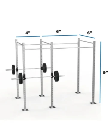 • Cross bars are adjustable from 6’2″ to the top of the upright in ~2″ increments, and can be attached to any side of the upright