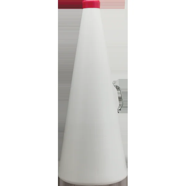 25″ plastic megaphone is made of molded white plastic with a plated metal mouth piece and is lightweight and waterproof. Mouthpiece cover sold separately.