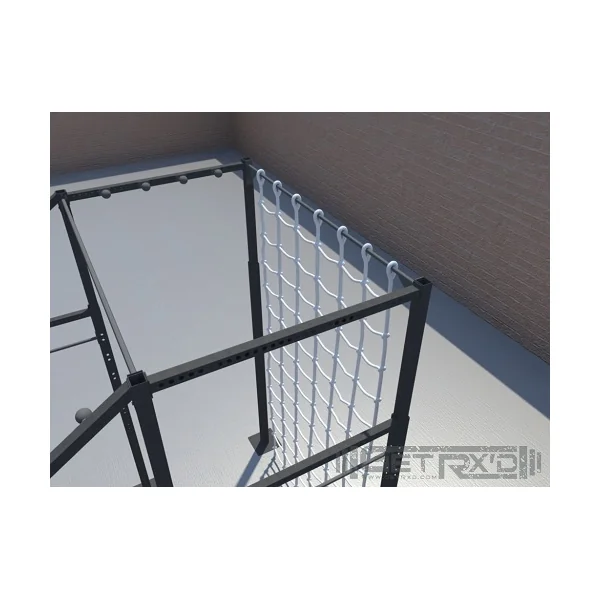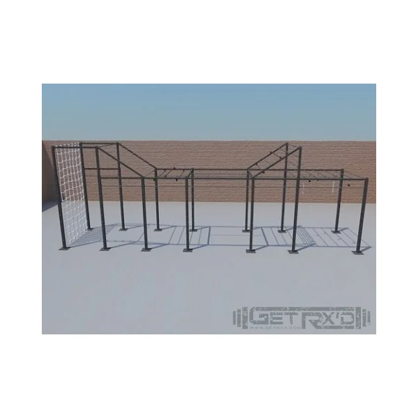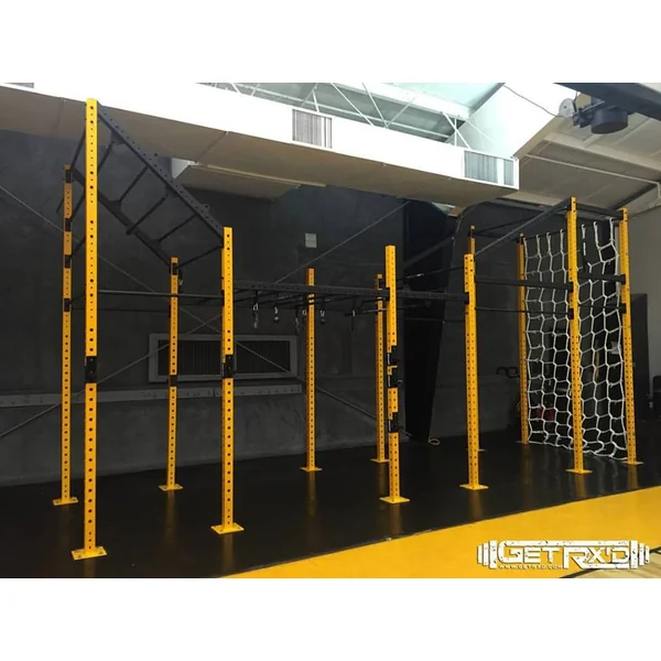 1st: You start by scaling a 12′ high cargo net (which can be stretched to 15′).