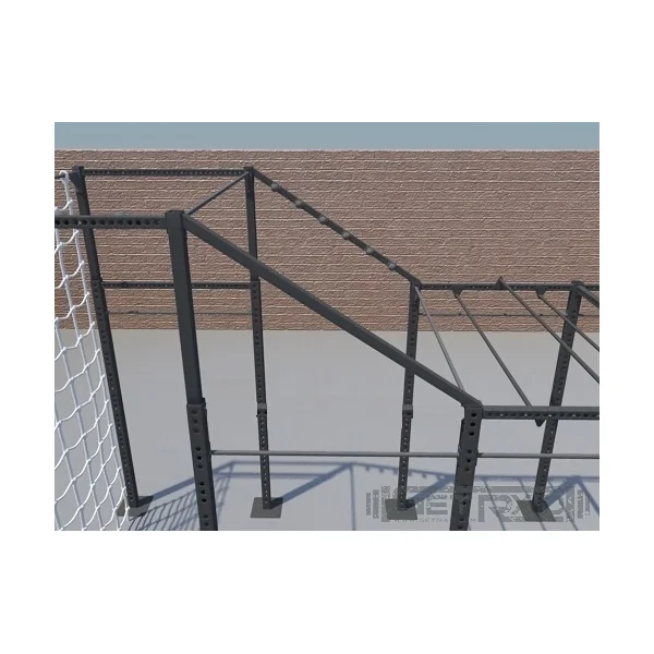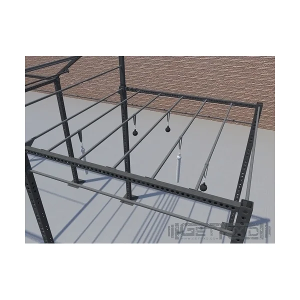 • Pull-up bars, square cross bars, and monkey bars are adjustable in height along the upright tubes from 6’2″ up to 9′ or 12′