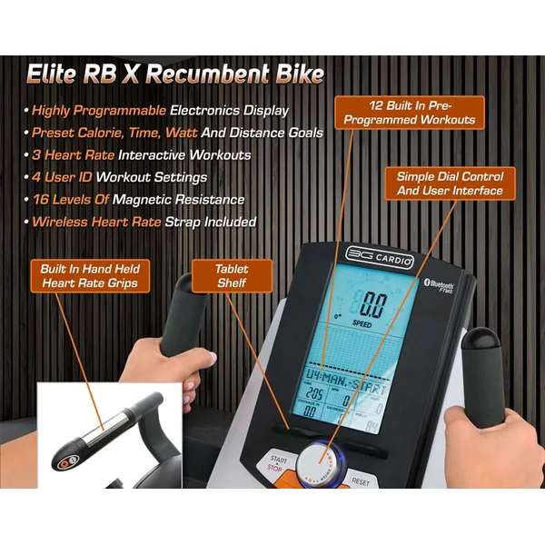 • Included Wireless Heart Rate Strap And Built In Hand Held Heart Rate Grips