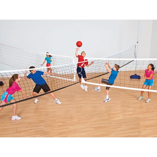 Turn your two-sided court into a four-sided, fast-paced game perfect for mixing up your traditional volleyball and badminton games. You can double the number of teams and make a four-team volleyball game, with players serving across corners to any court they choose.