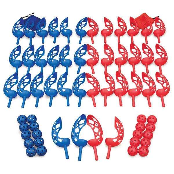40-Player Scoop Packs include 40 scoops (20 scoops in each color), 20 ResisDent Balls (4″ dia), and 2 VersaBag mesh storage bags.
