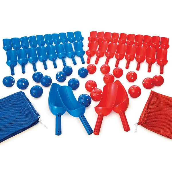 Accommodate up to 40 players, or 2 teams of 20 split by red and blue scoops, with a large scoop game set. The concept of scoop games is simple: use the scoop to pick up the ball! From there, there are an infinite number of game varieties to keep students on their toes. Have a race to collect opponents’ balls, race scooped balls back to a bucket for points, or have students scoop and run a relay without dropping their ball—the possibilities are endless! Use these durable scoops indoors or out.