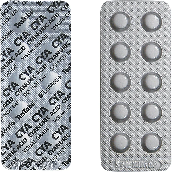 Lamotte cyanuric acid visual grade Testabs tablets are formulated to dissolve rapidly and produce consistently accurate results. Humidity controlled production and foil packaging provide these reagents with a shelf life of over three years.
