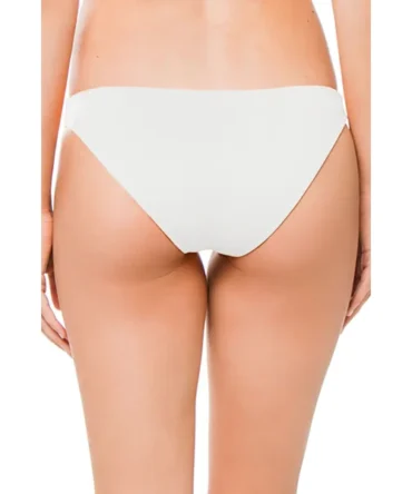 Bikini bottom features textured crinkle fabric and adjustable side ties with beads. Offers minimal bottom coverage.