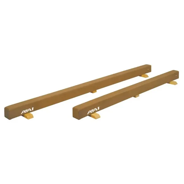 New gymnasts will enjoy learning basic moves with these low-to-the-ground trainers that look like a completion beam. They’re great for working on turns, leaps, and dismounts. These beams have a durable wood core construction that lasts for years. The surface features 1/4″ padding with a suede-like competition cover—both combine to provide a soft, slip-resistant surface. The beams sit on wooden feet for maximum stability. Each beam is 4″W x 5-1/4″H. Choose from 8’L or 10’L.