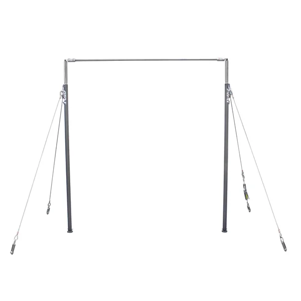 Single bar design simulates a competitive top rail, allowing gymnasts to work on difficult routines, release moves, and other tough skills during practice. Routines and moves performed on this trainer will translate to uneven bars or horizontal bars. Graphite E rail has a feel similar to real wood with the durability and strength of fiberglass. Bar adjusts in 5 cm increments from 7’8-1/2″ to 8’6-5/8″ with a 12′ x 6′ footprint. Requires 4 floor anchors (sold separately).