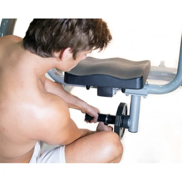 Features a free swivel padded knee rest to easily train the oblique muscles. Weight posts allow for added resistance and a progressive workout.