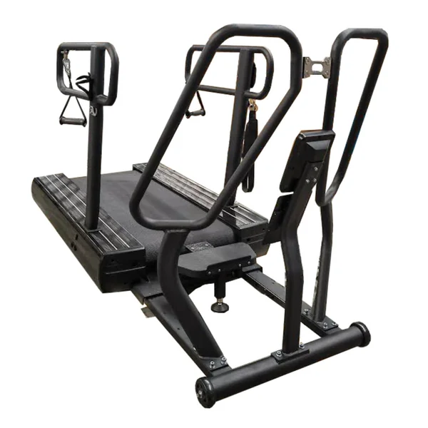 Perfect for compact settings, it builds strength, speed, stamina, and explosive power in just 8 feet of space. The self-charging console delivers up to 450 lb of magnetic resistance at the push of a button—no need to load heavy plates. Adjustable telescoping handles fit students of all heights, while included accessories expand strength and agility training. The bi-directional roller track supports push, pull, and lateral movements. Best of all, the SledMill is 100% self-powered—all the effort comes from your students, not electricity!