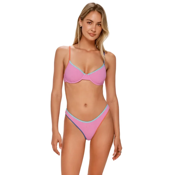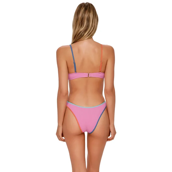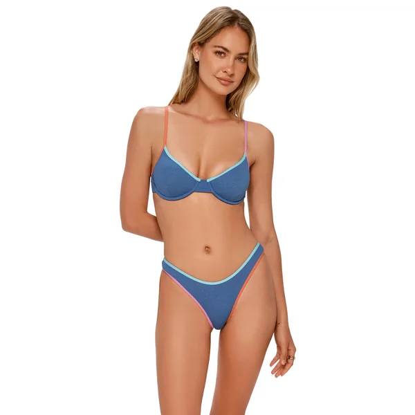 Addie bikini top features colorblock piping, underwire support and removable cups.