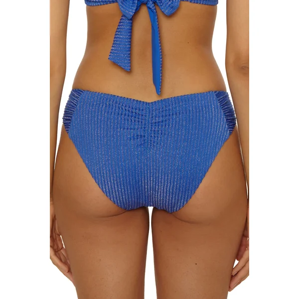 Ribbed Adela hipster bikini bottom features a cinched back and moderate coverage.