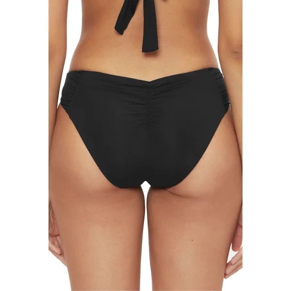 Adela bikini bottom features a cinched back, and offers moderate coverage.