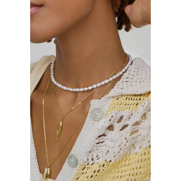 Adoni necklace features 18k gold plated stainless steel, gold plated fish charm, and a lobster clasp closure.