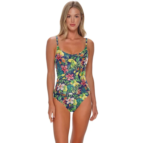 The Anya tankini is your go-to for streamlined style and steady lift. This form-fitting tankini has a hidden underwire bra that delivers lift and contouring comfort. The sleek, rectangular hardware lends to an elevated minimalism. Slip on for chic coverage and reliable hold.