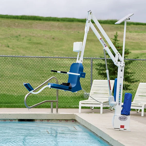 Aqua Creek Scout Excel Pool Lift features 360° rotation and adjustable seat height and is versatile enough to fit almost any pool profile. This pool lift has a 375 pound weight capacity and is ADA and UL safety certified. Anchor Sold Separately. Shipping Weight: 275 lbs