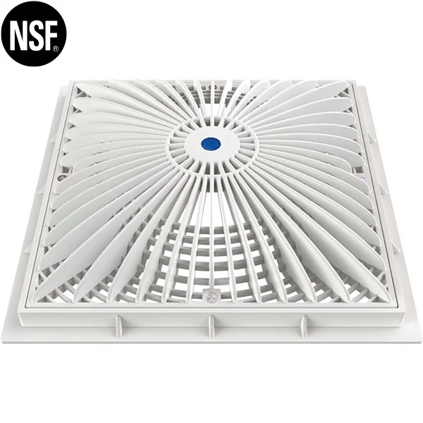 12″ x 12″ Aquastar MoFlow swimming pool grate includes grate only, and fits Hayward 1″ deep frame. UL approved.