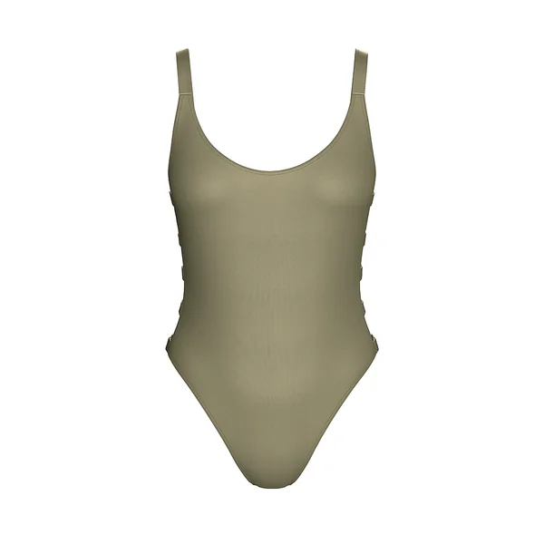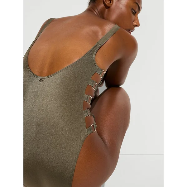 Bring the heat in refreshed archival Swim styles with an elevated look and feel. This classic One-Piece takes a sexy turn with unique square hardware along its cut-out sides plus a flattering high cut that’ll give you legs for days.