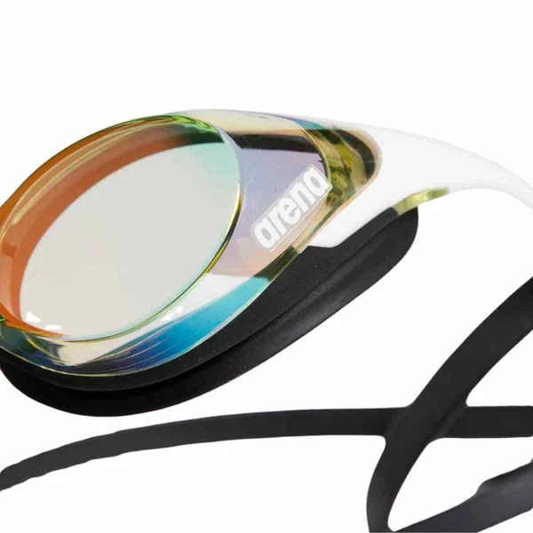 The classic Cobra racing goggles are back with mirrored lenses and the revolutionary Swipe Anti-Fog. Discover the innovative and FINA approved arena unisex racing Arena Cobra Swipe Mirror Racing Goggles – Copper/White. The arena Swipe Anti-Fog technology lasts ten times longer and can be easily reactivated. For reactivation gently swipe the inner lenses five times with your fingertip while the goggles are in the water, making sure there is no dirt on the lenses while doing so. Do this every time lenses become foggy to enjoy clear vision for longer. Delivered with four interchangeable nose bridges for perfect customization to different face and nose shapes. The dual strap is easily adjustable at the back of the head and guarantees stable fit, even during start and turn. With innovative temples design for a secure fit especially in dives. The goggles are equipped with anti-fog coating, UV protection and are PVC free. This style is available with either light mirrored lenses for indoor swimming or dark mirrored lenses for outdoor swimming.