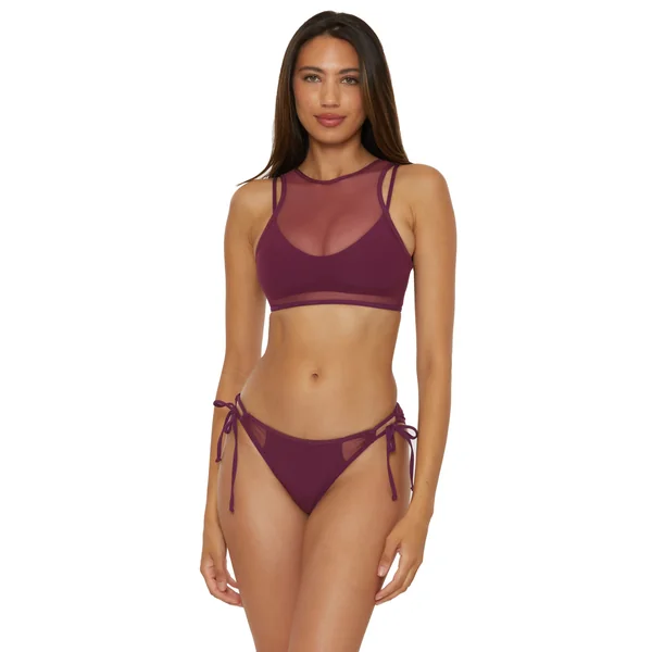 Ariadne bikini top features a removable mesh overlay and multiple ways to wear. Offers adjustable string ties, removable soft cups, and an adjustable hook back closure.