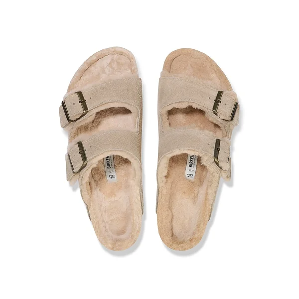 The Arizona sandal, made cozy for the colder months. Classic suede lends a velvety feel that continues on the inside. The style is fully lined in genuine shearling, right down to the original contoured footbed. A soft, supportive landing every time.