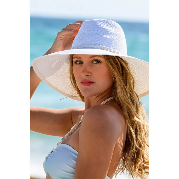 Ashtin fedora hat features a wide bell brim and vegan leather braid trim.