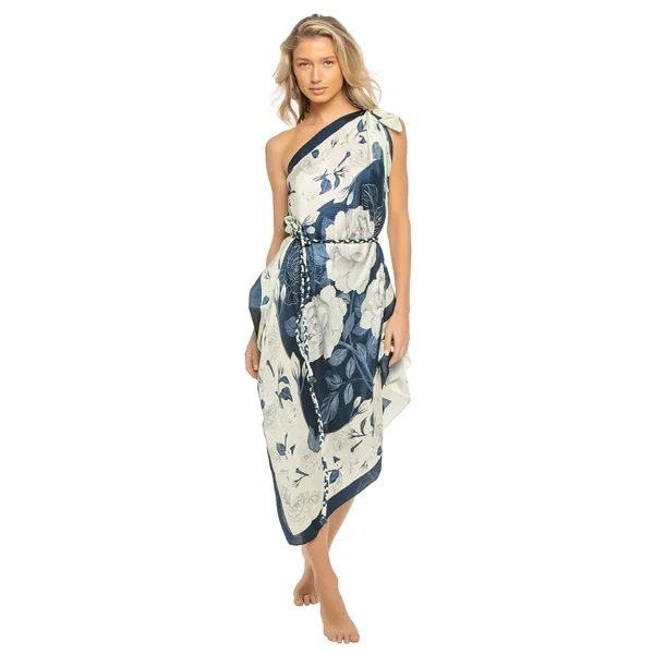 This one shoulder scarf dress is crafted in soft, sustainable and biodegradable Bemberg satin. Features an asymmetrical neckline with a pre-knotted shoulder tie and braided belt. It can be worn as a dress or blouse.
