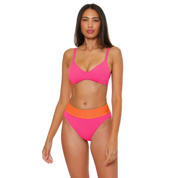 Swimwear, especially in bright or saturated colors, may release a small amount of dye when new. Rinse your suit in cold water prior to first wear to remove any excess dye — this is a normal occurrence and not a manufacturing defect. With proper care, swimsuits will look beautiful for years. Always hand wash in cold water with a gentle cleaner, never machine wash or dry. Rinse immediately after wear to remove saltwater and chlorine, and avoid extended time in hot tubs or heavily chlorinated pools.