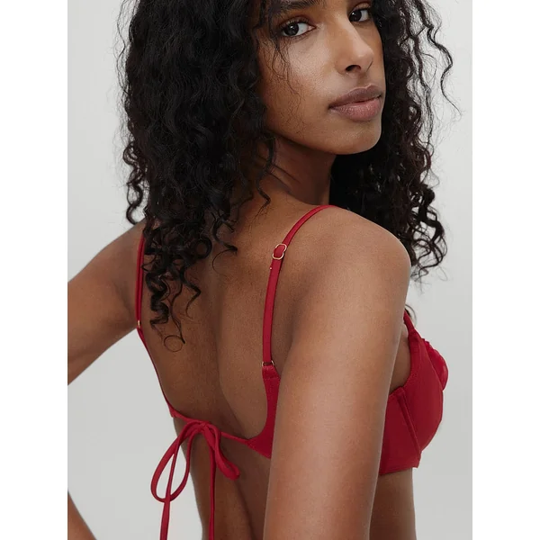 Add some push to the pool with this supportive Bikini Top that features a sweet, ruffled trim and a layered look. Make it a match and pair with the Maverick Bikini Bottom. Exclusively from the Bella Hadid x Frankies Bikinis collaboration.