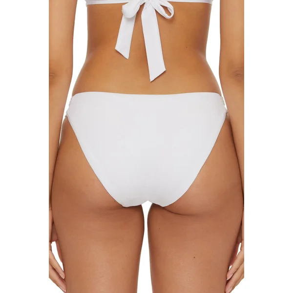 Avery bikini bottom features scalloped crochet tab sides and offers moderate coverage.